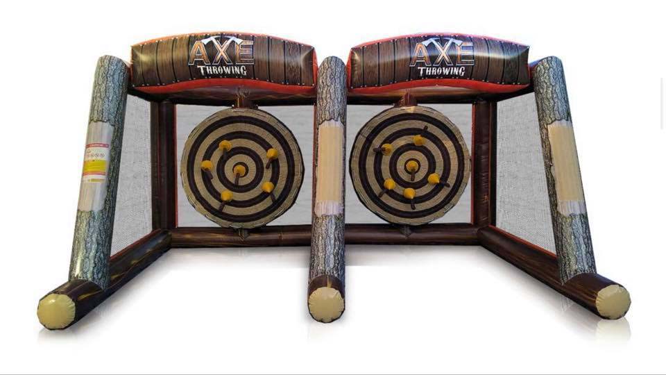 Bounce It Out Events is happy to introduce our inflatable axe throwing for your next event! The newest craze in extreme entertainment is popping up all over the country in bars and strip malls. Now you can have the newest craze at your event! This axe throwing game is double sided to allow two players at a time. Compete for points or just for fun! Pair this interactive game rental with one of our other inflatable games to complete your event!